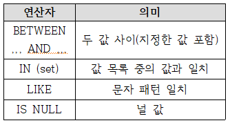 - 질의 결과로 반환되는 행의 순서는 정의되어 있지 않아서 ORDER BY 절을 사용하여 행을 정렬해야 함