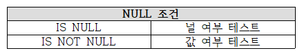 - 값이 특정 값 집합에 확인하려면 IN 조건을 사용함