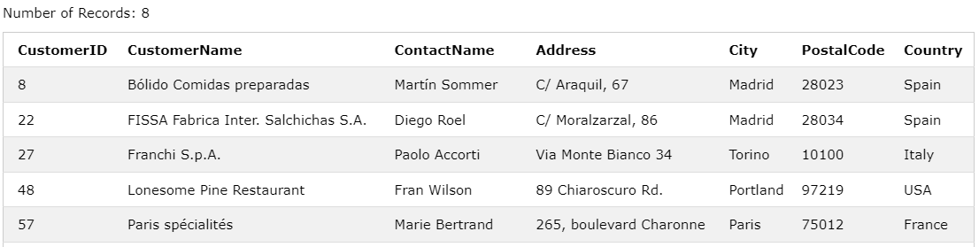 WHERE City IN ('Torino', 'Paris', 'Portland', 'Madrid')
