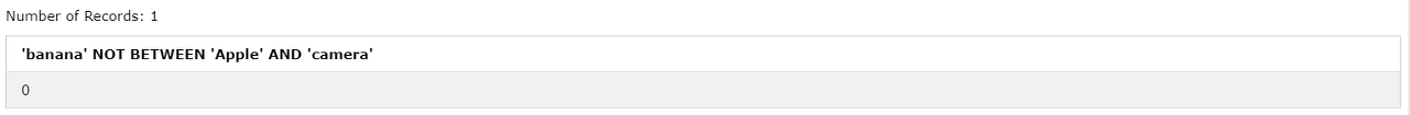 SELECT 'banana' NOT BETWEEN 'Apple' AND 'camera';