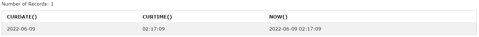 SELECT CURDATE(), CURTIME(), NOW();