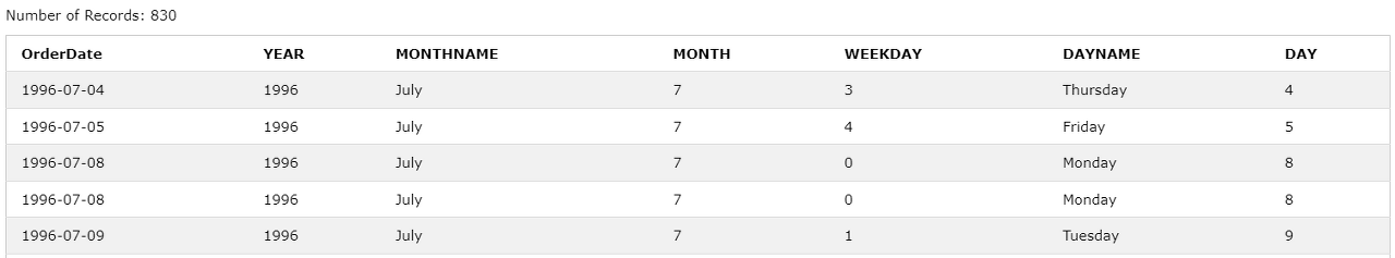 WEEKDAY(OrderDate) AS WEEKDAY,