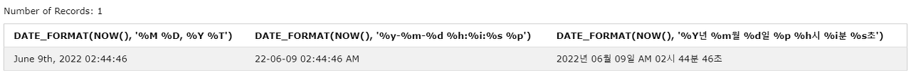 | DATE_FORMAT | 시간/날짜를 지정한 형식으로 반환 |