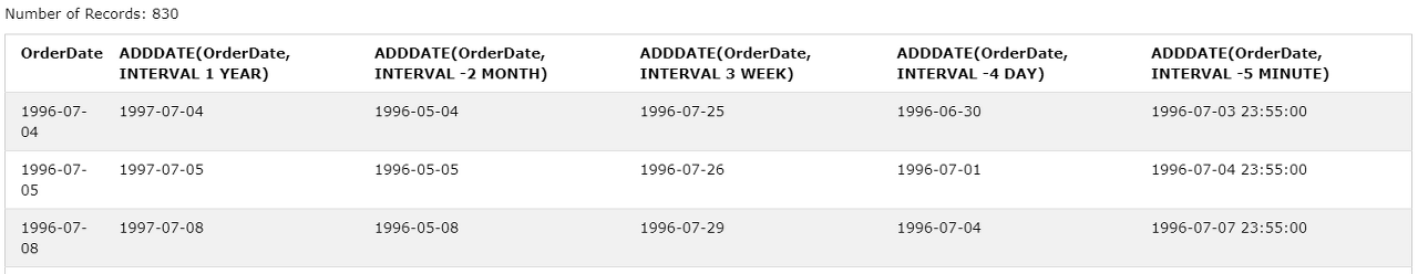 ADDDATE(OrderDate, INTERVAL 3 WEEK),