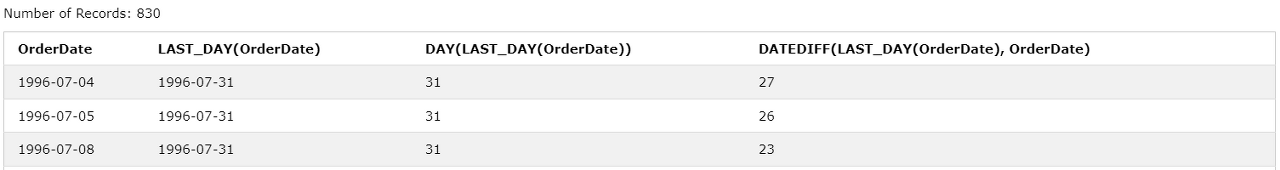 DAY(LAST_DAY(OrderDate)),