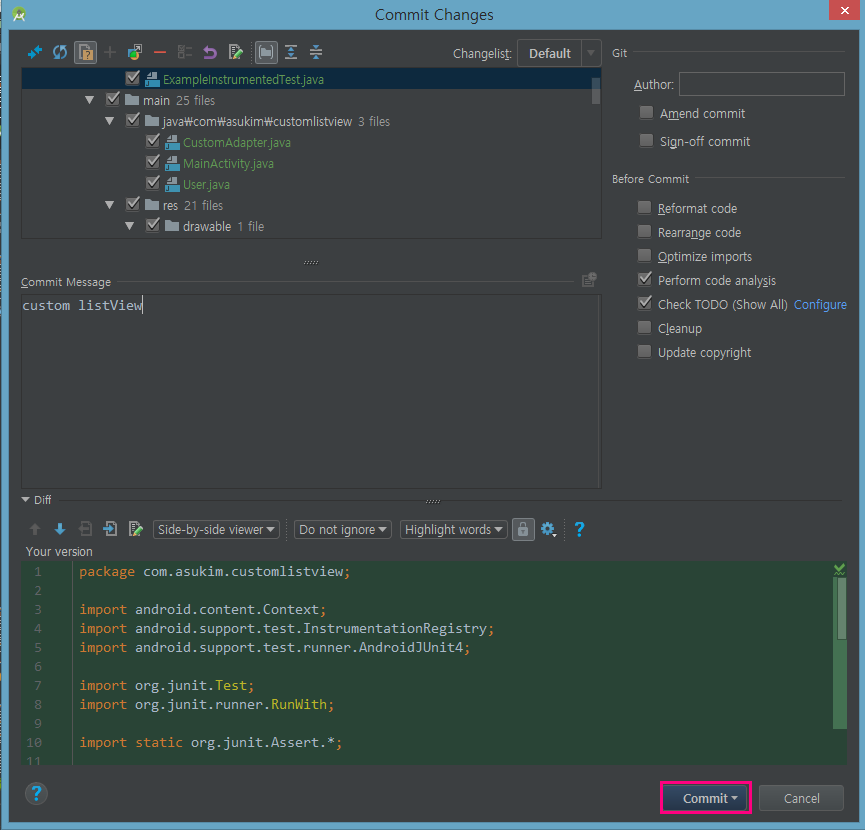 Commit 버튼을 눌러줍니다.