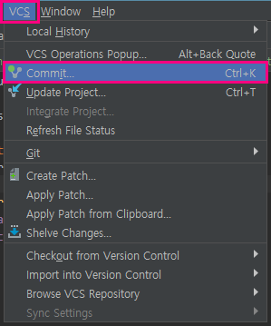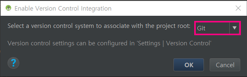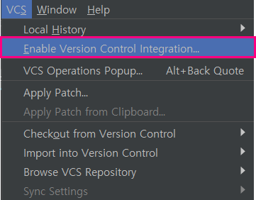 VCS 메뉴를 켜서 버젼 컨트롤을 활성화시키고