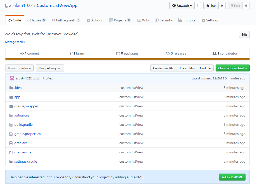 안드로이드 스튜디오에서 해당 레파지토리 주소를 연동하기 위해