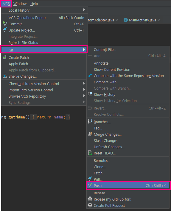 VCS - Git - Push 을 해줍니다.